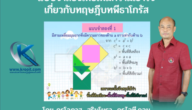 (ขอขอบพระคุณครูพัชรี มัธยม จาก มุกดาหาร ที่นำเรื่องนี้มาปรึกษาหาแนวทาง ทำยังไงจะสื่อความหมายของทฤษฎีบทพีทาโกรัสนี้ให้นักเรียนเข้าใจได้ง่ายๆ ทางครูไอทีดอทคอมเลยสร้างแผนภาพเพื่อแสดงให้ชัดเจนและเข้าใจยิ่งขึ้น) หากคิดว่าเป็นประโยชน์ต่อลูกหลานหรือผู้สนใจ กรุณากดไลค์ และแชร์ให้ด้วยนะครับ เพื่อเป็นสาธารณะกุศลต่อไป