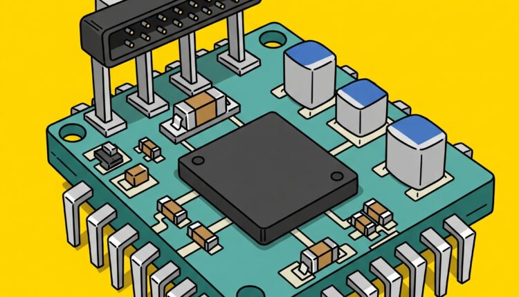 2. บอร์ดพัฒนา (Development Board) มีพอร์ต USB สำหรับจ่ายไฟและอัปโหลดโปรแกรม, ชิปแปลงแรงดันไฟฟ้า, และขาสำหรับเชื่อมต่ออุปกรณ์ภายนอก